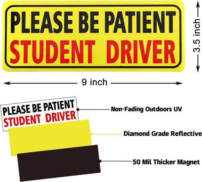 • STRESS REDUCTION: There comes with 3 pack student driver sticker, perfect for each side and the rear. These magnets hint other motorists to stay away from you, thereby saving tailgating and bothersome honking. You will have a better situation to focus on learning how to drive, without having to risk irritating other drivers.